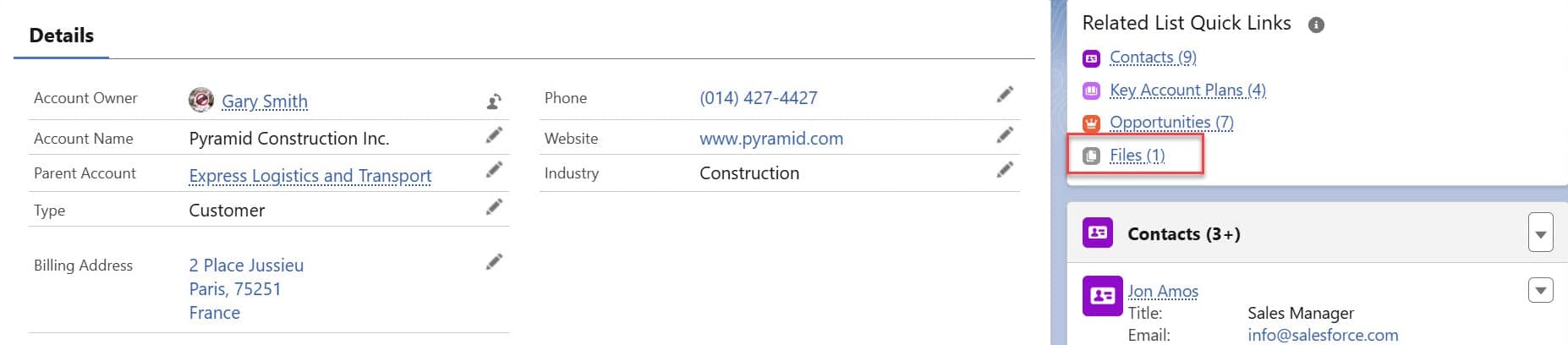 The right side automatically lists all the Contacts linked to the Account. You can also search for contacts associated with other Accounts.