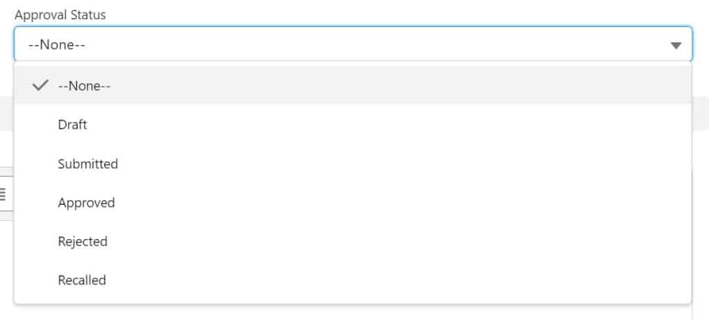 We recommend you automatically update this field based on the steps in the approval process. You can also create a report and dashboard chart to show the status of Account Plans and their approval status.