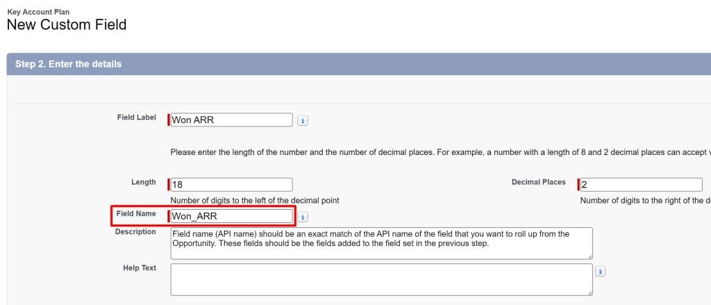 Pro tip: Make sure the Label of each field on the Account Plan matches the corresponding Opportunity field. Salesforce will then automatically create a matching API Name.
