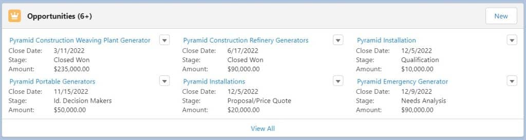 Scroll down the page to see the opportunities linking to the Account Plan. Here’s an example of what that looks like: