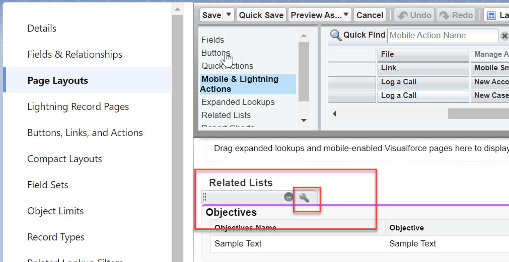 8. Repeat this process for the following related lists further down the page: Account Plan Contact Roles, Account Plan Colleague Roles, Account Plan Partner Roles.