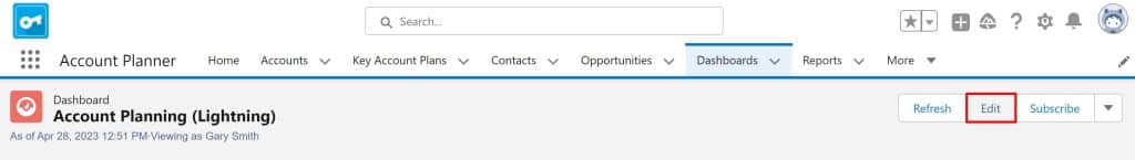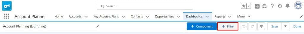 You can extend the dashboard by adding other chart variants from the pre-built reports or creating new reports using the Key Account Plan report type.