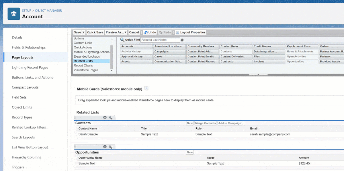 Remember, you’ll need to do this for each Account Page Layout if you have more than one.
