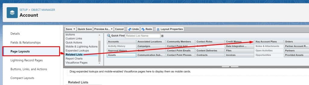 - Drag the Key Account Plans Related List onto your Account Page Layout