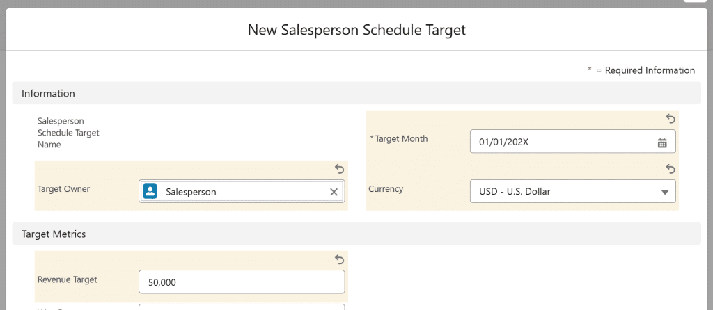 - Enter the Target Owner (i.e., the salesperson).
