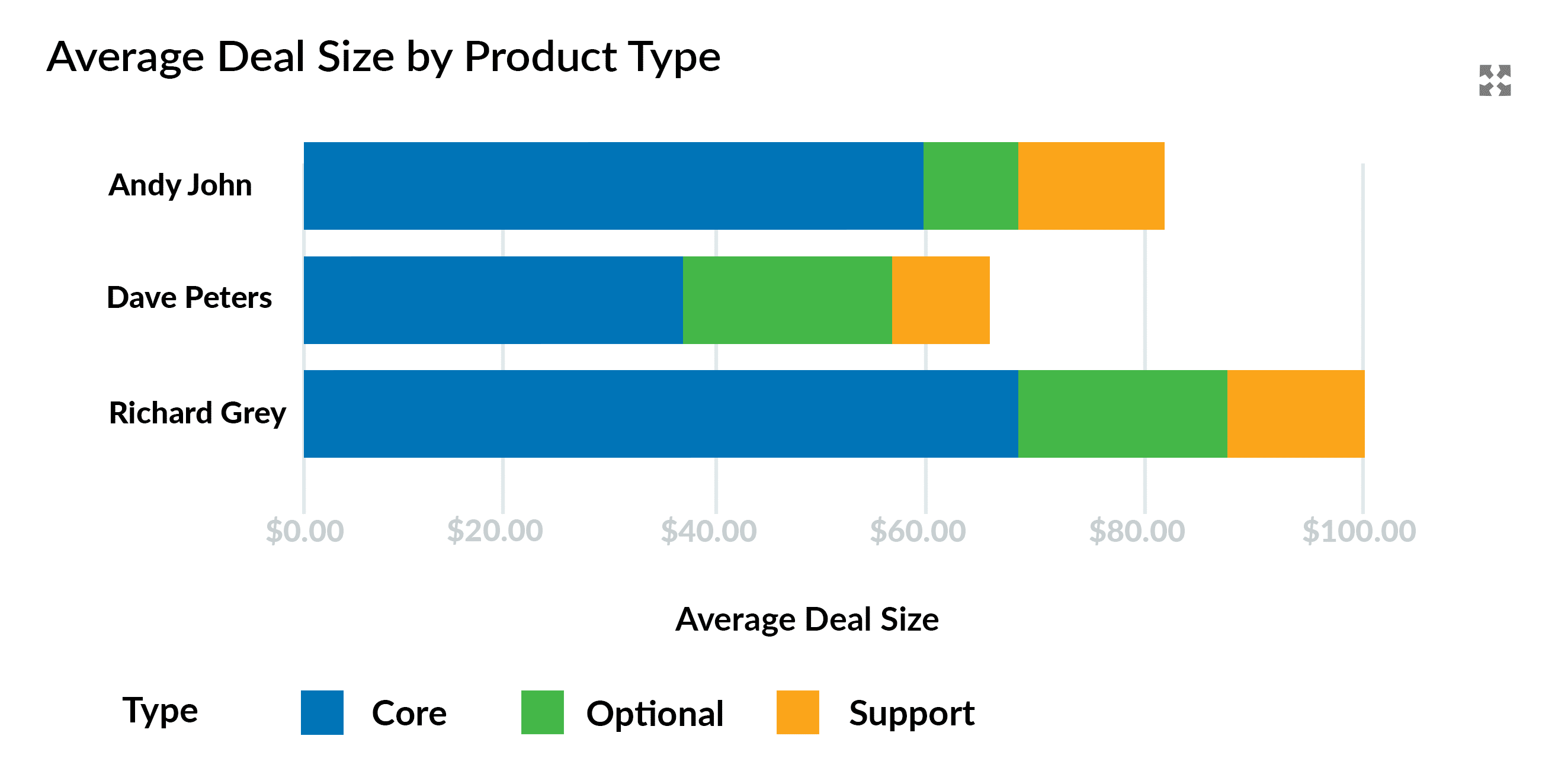Why does Richard have the most significant average deal value? Because he is selling more products in the ‘Optional’ category.
