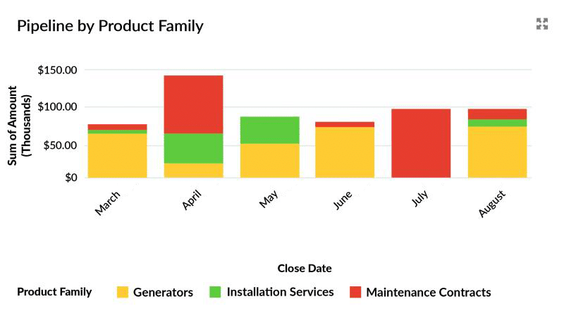 - View the pipeline and won revenue by SKU, product, and product category levels.