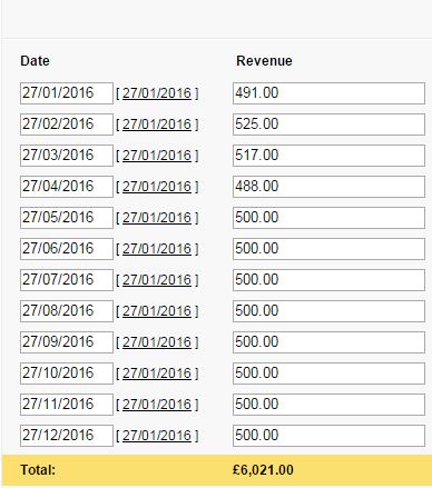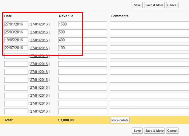 Each month, the account manager updates the forecast revenue schedule with the ‘actual’ revenue that was generated. We can see this in the figures for January to April in the screenshot above. Optionally the account manager also updates future schedules based on the latest available information.