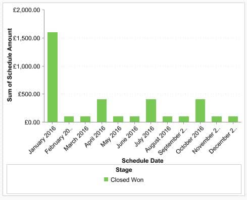 Unfortunately the functionality associated with the standard product schedule in salesforce has several constraints – additional fields such as ‘payment status’ cannot be added for example. It also requires sales people to manually calculate the amount and timing of each schedule.