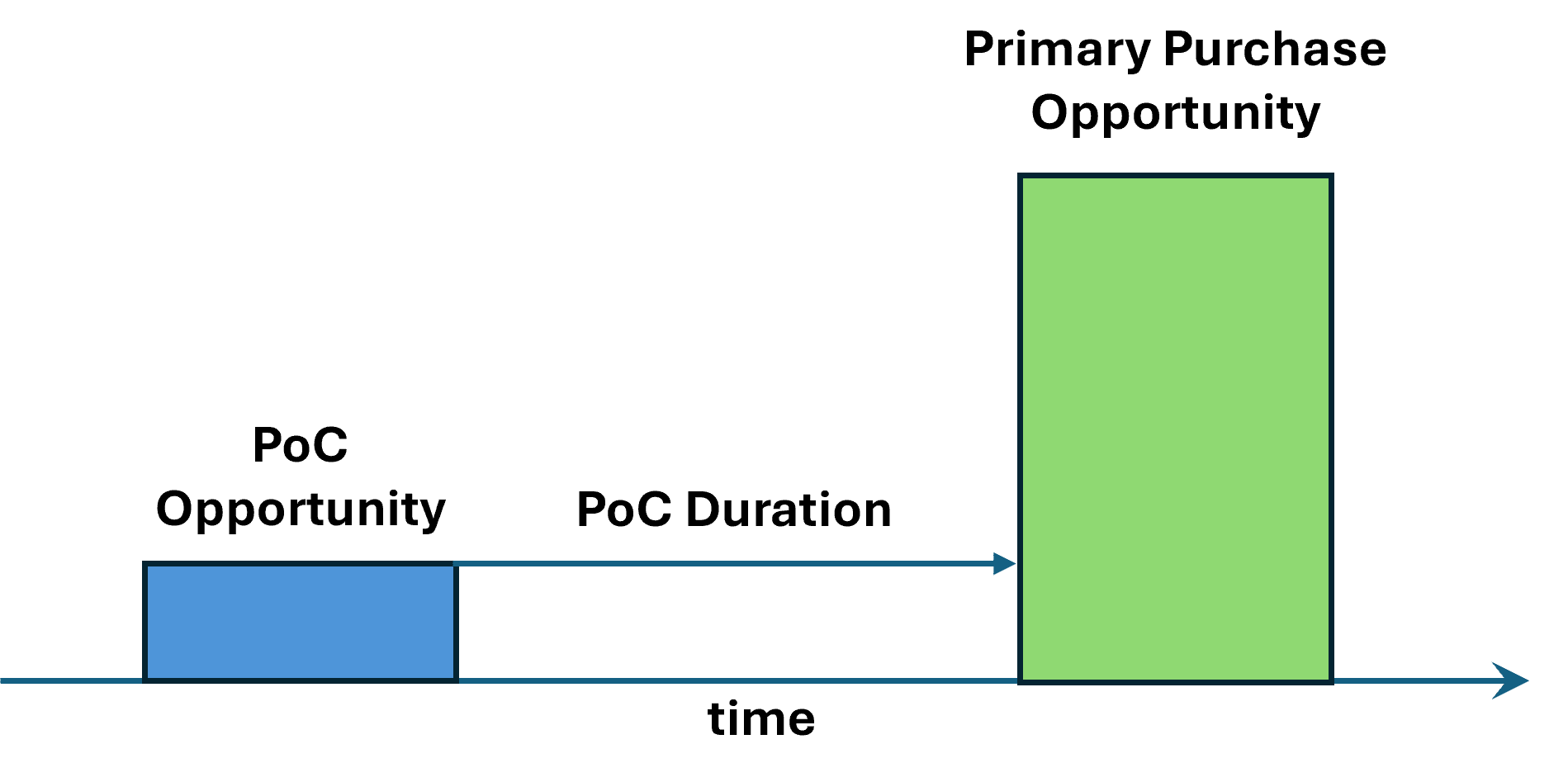 We take this approach because the customer does not explicitly commit to proceeding with the primary purchase once the POC is complete (they usually do, but it's not guaranteed).