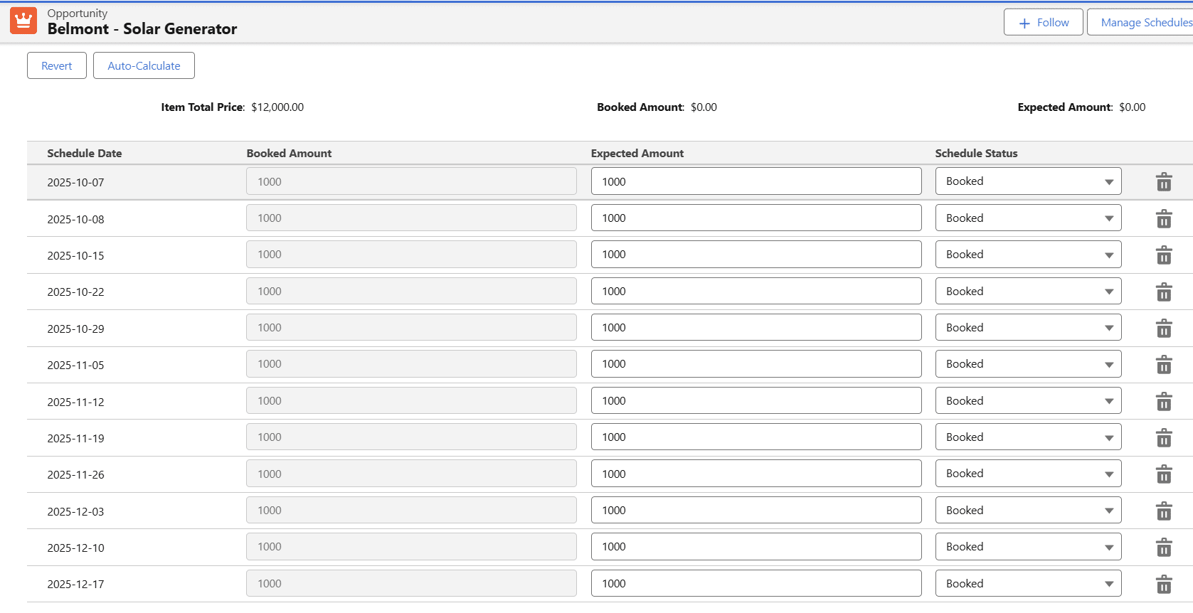 Revenue Recognition Using Product Schedules in Salesforce