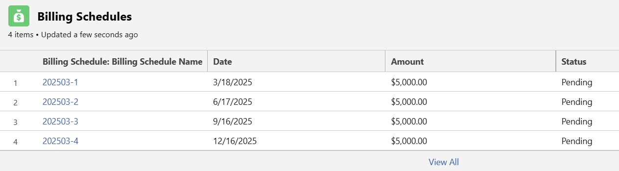 The result is a sequence of billing schedules linked to the opportunity and relevant products.