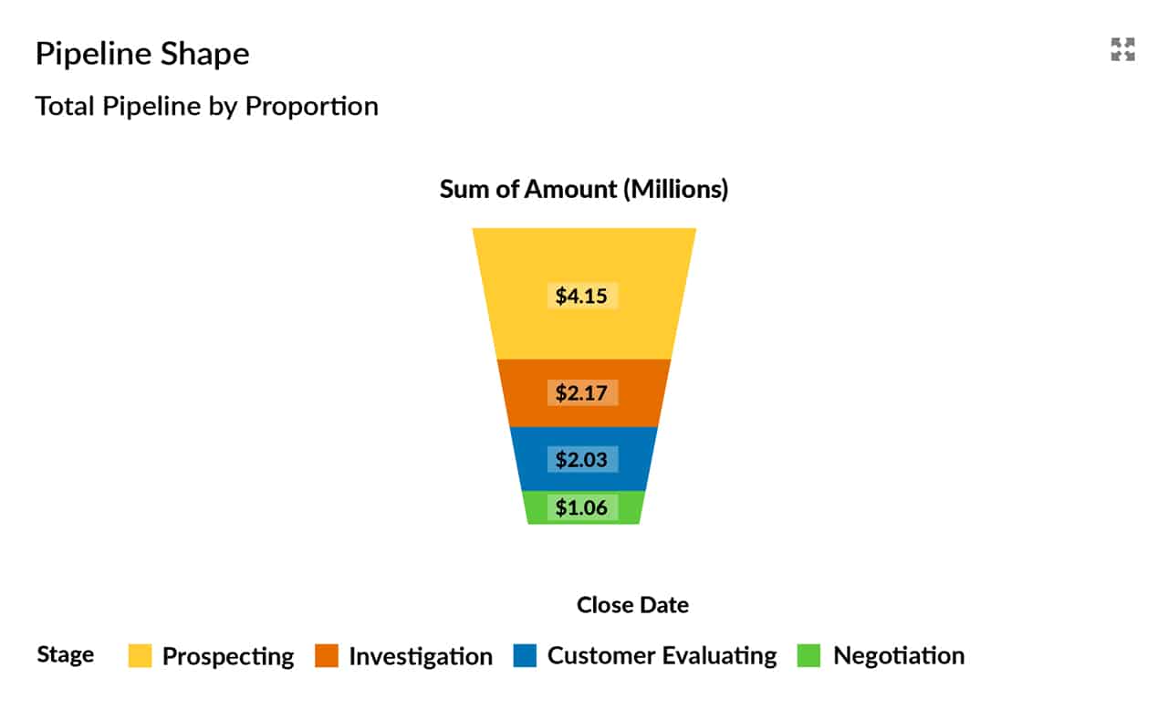 If you only use one dashboard chart that measures sales pipeline size, then make it this one.