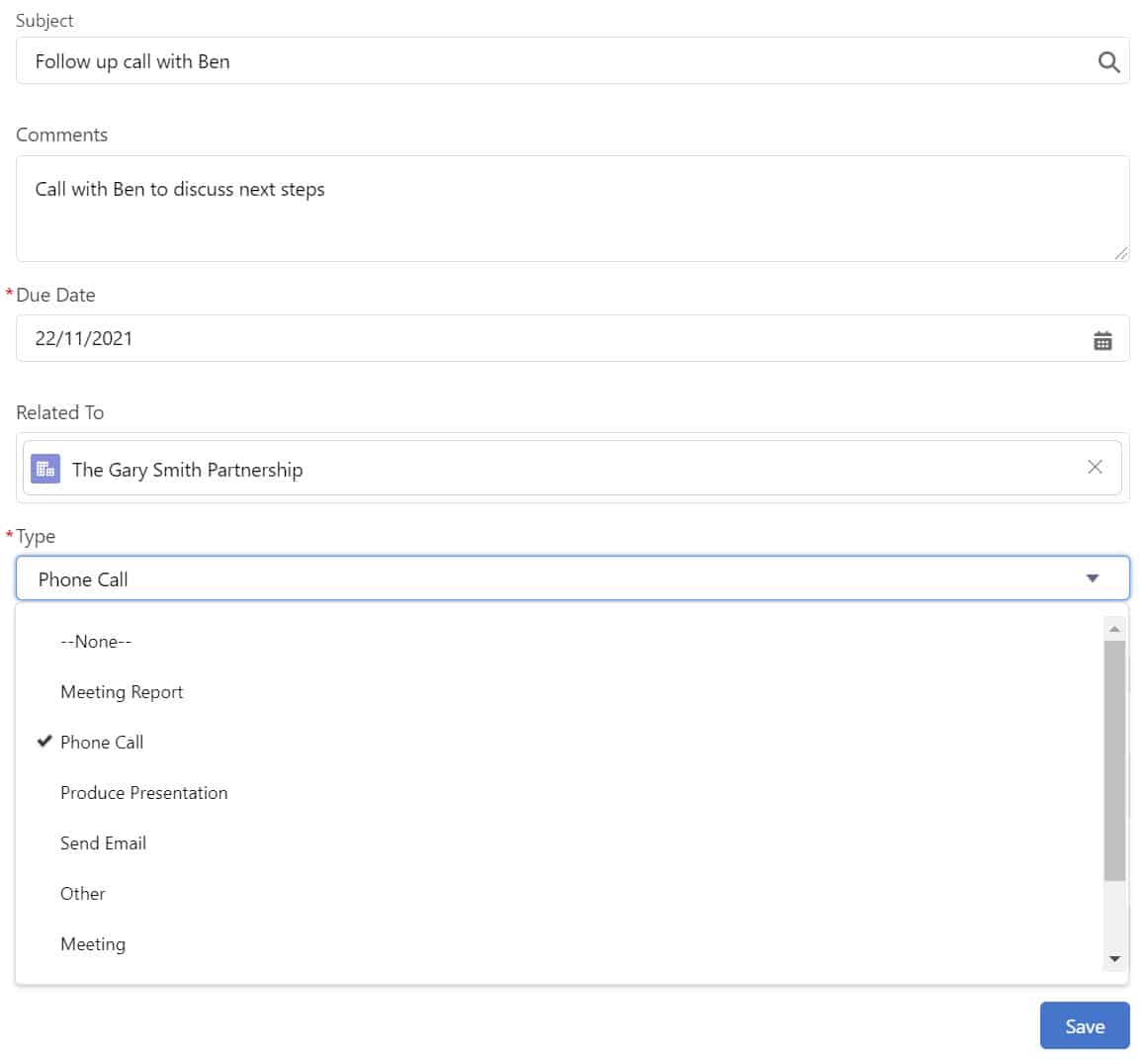This change means future activities will always have a due date. If you don’t, you risk a task having no specific date and not appearing on reports.