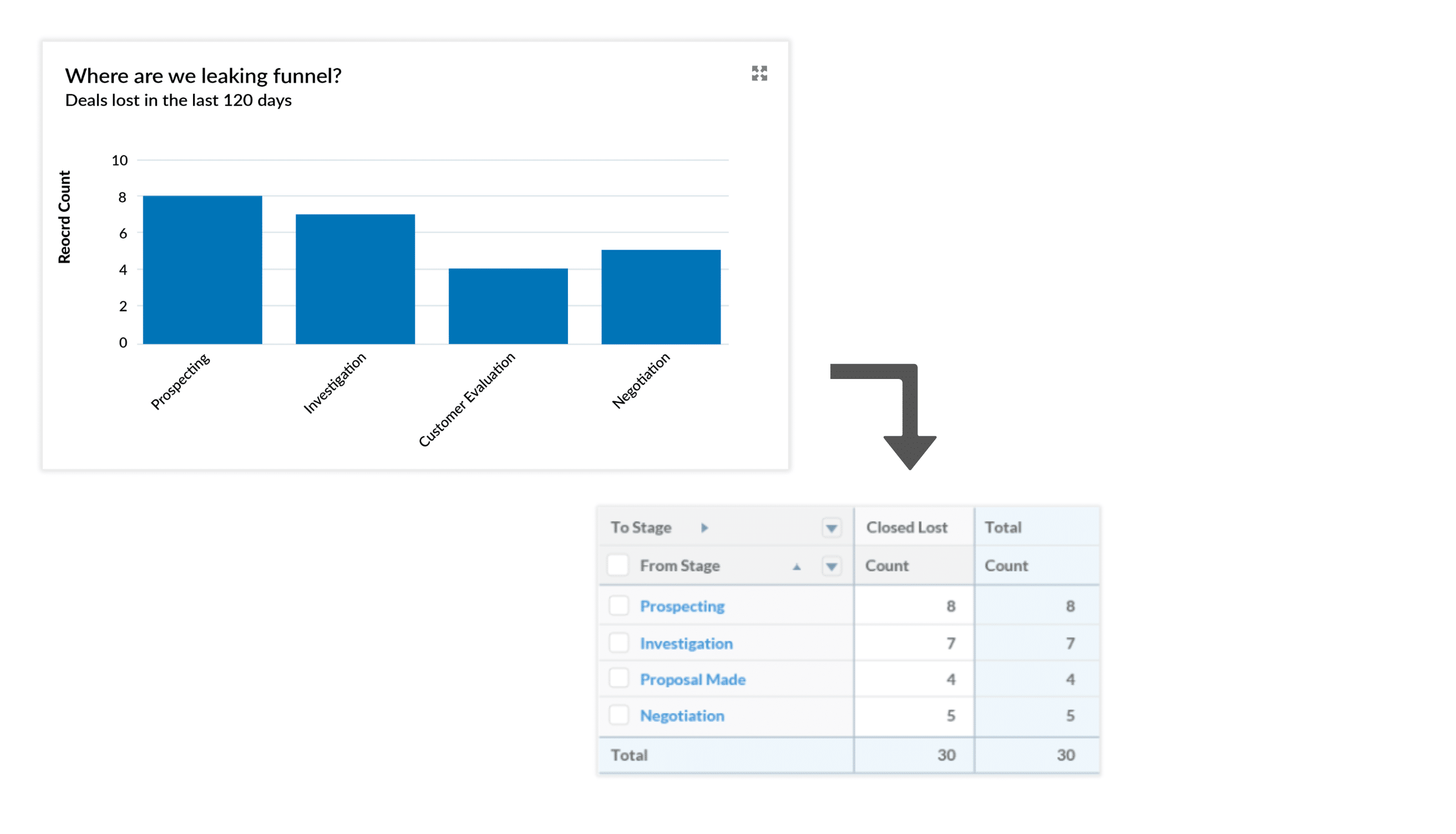 The Leaking Funnel report helps sales managers answer two critical questions: