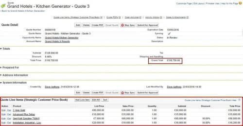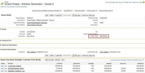 The total value of the quote is £83,700. Incidentally to see how to make it easy for sales people to add multiple products to an opportunity or quote, check out our product selection wizard.